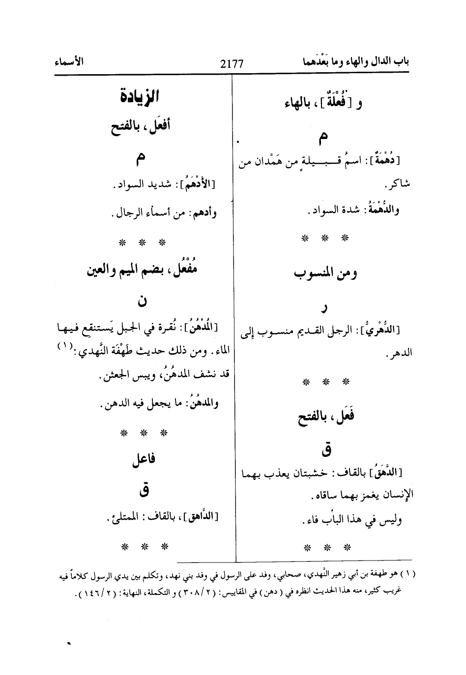 (1) هو طهفة بن أبي زهير النَّهدي، صحابي، وفد على الرسول في وفد بني نهد، وتكلم بين يدي الرسول كلاماً فيه غريب كثير، منه هذا الحديث انظره في (دهن) في المقاييس: (2/ 308) والتكملة، النهاية: (2/ 146).