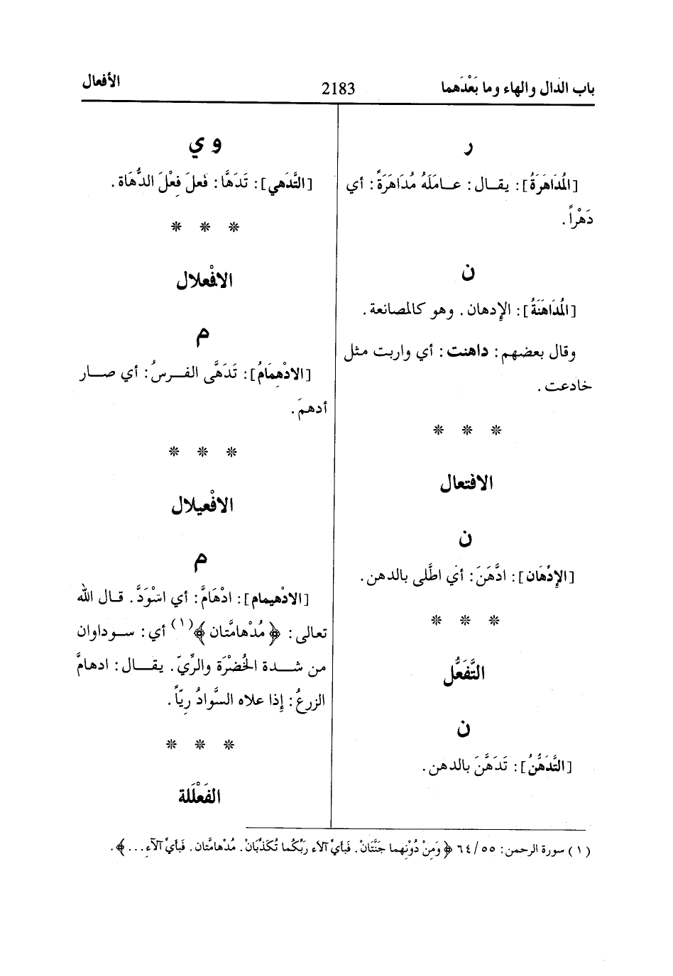 (1) سورة الرحمن: 55/ 64 وَمِنْ دُونِهِماا جَنَّتاانِ. فَبِأَيِّ آلااءِ رَبِّكُماا تُكَذِّباانِ. مُدْهاامَّتاانِ. فَبِأَيِّ آلااءِ ....