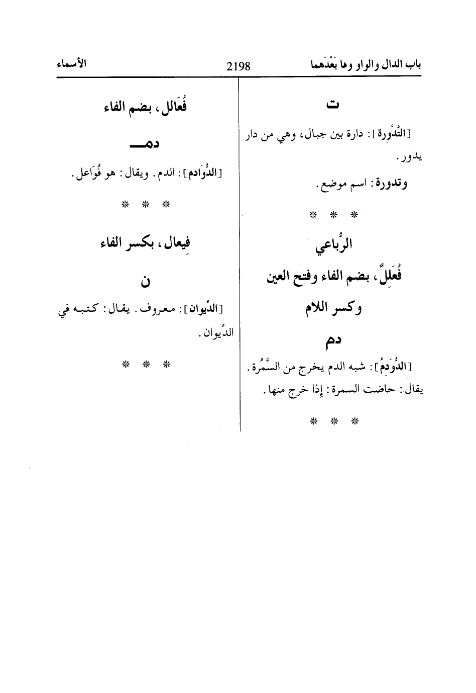 [الدُّوَادم]: الدم. ويقال: هو فُوَاعل.