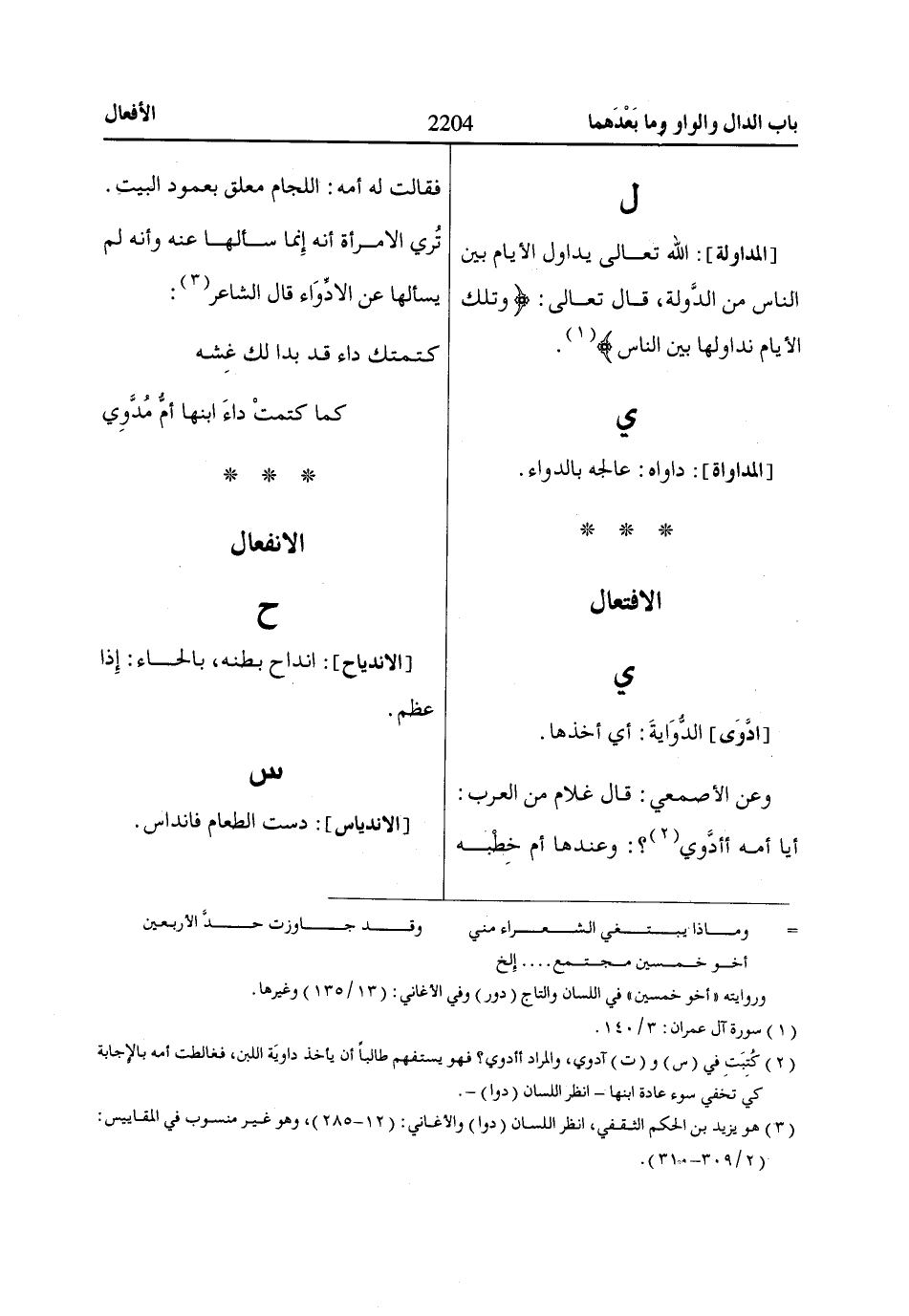 (3) هو يزيد بن الحكم الثقفي، انظر اللسان (دوا) والأغاني: (12 - 285)، وهو غير منسوب في المقاييس:
