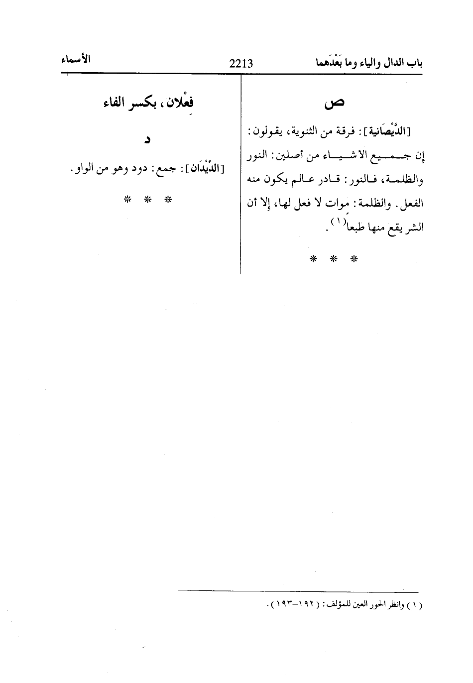 [الدَّيْصَانية]: فرقة من الثنوية، يقولون: