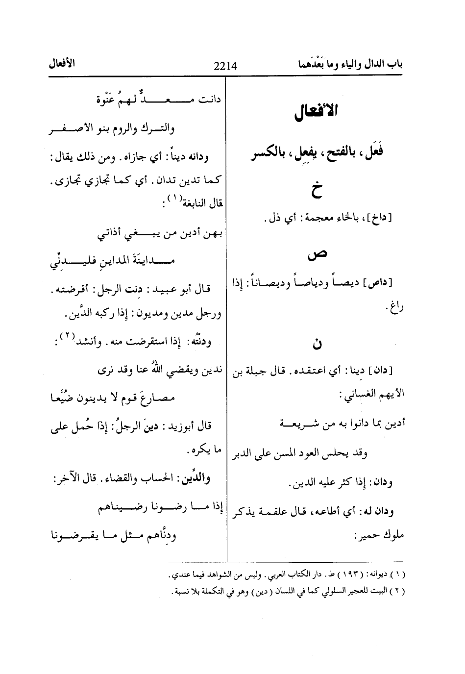 (2) البيت للعجير السلولي كما في اللسان (دين) وهو في التكملة بلا نسبة.