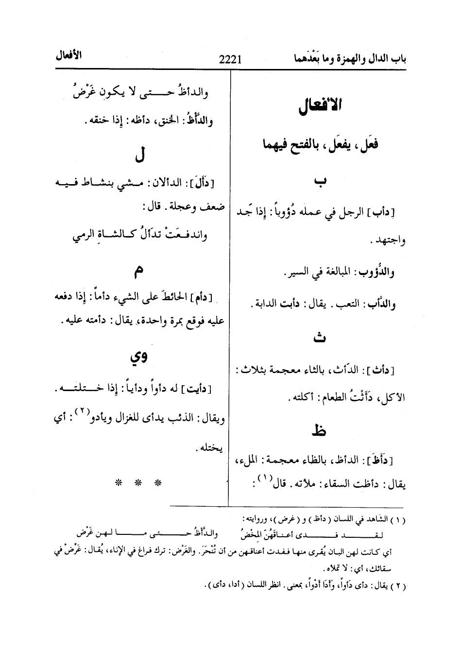 (2) يقال: دأى دَأواً، وَأَدَا أَدْواً، بمعنى. انظر اللسان (أدا، دأى).