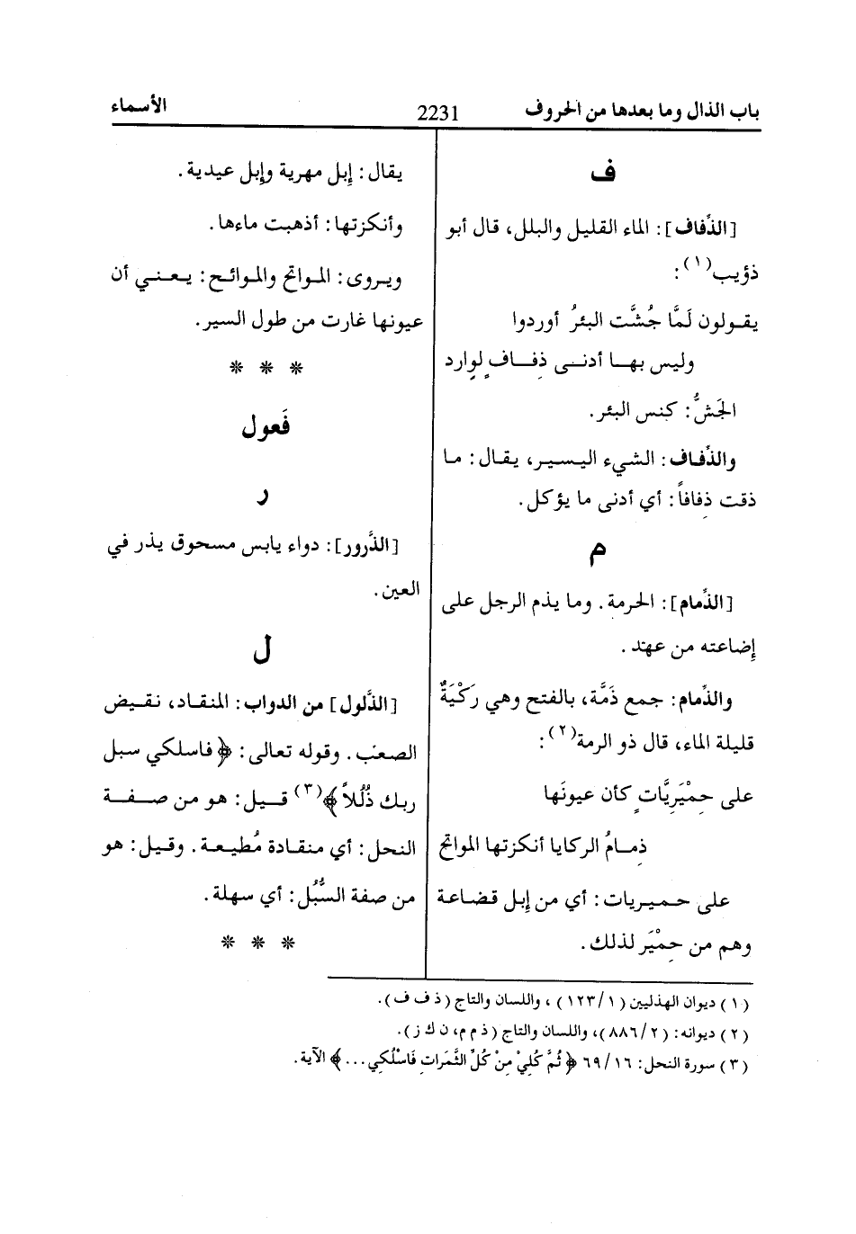(1) ديوان الهذليين (1/ 123)، واللسان والتاج (ذ ف ف).