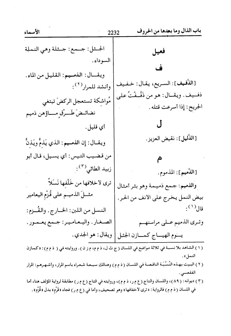 (2) البيت بهذه النسبة الناقصة في اللسان (ذ م م) وهنالك سبعة شعراء باسم المرار، وأشهرهم: المرار الفقعسي.