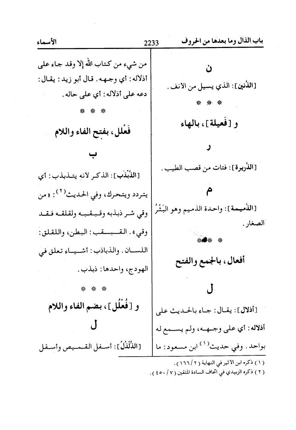 [أذلال]: يقال: جاء بالحديث على أذلاله: أي على وجهه، ولم يسمع له بواحد.
