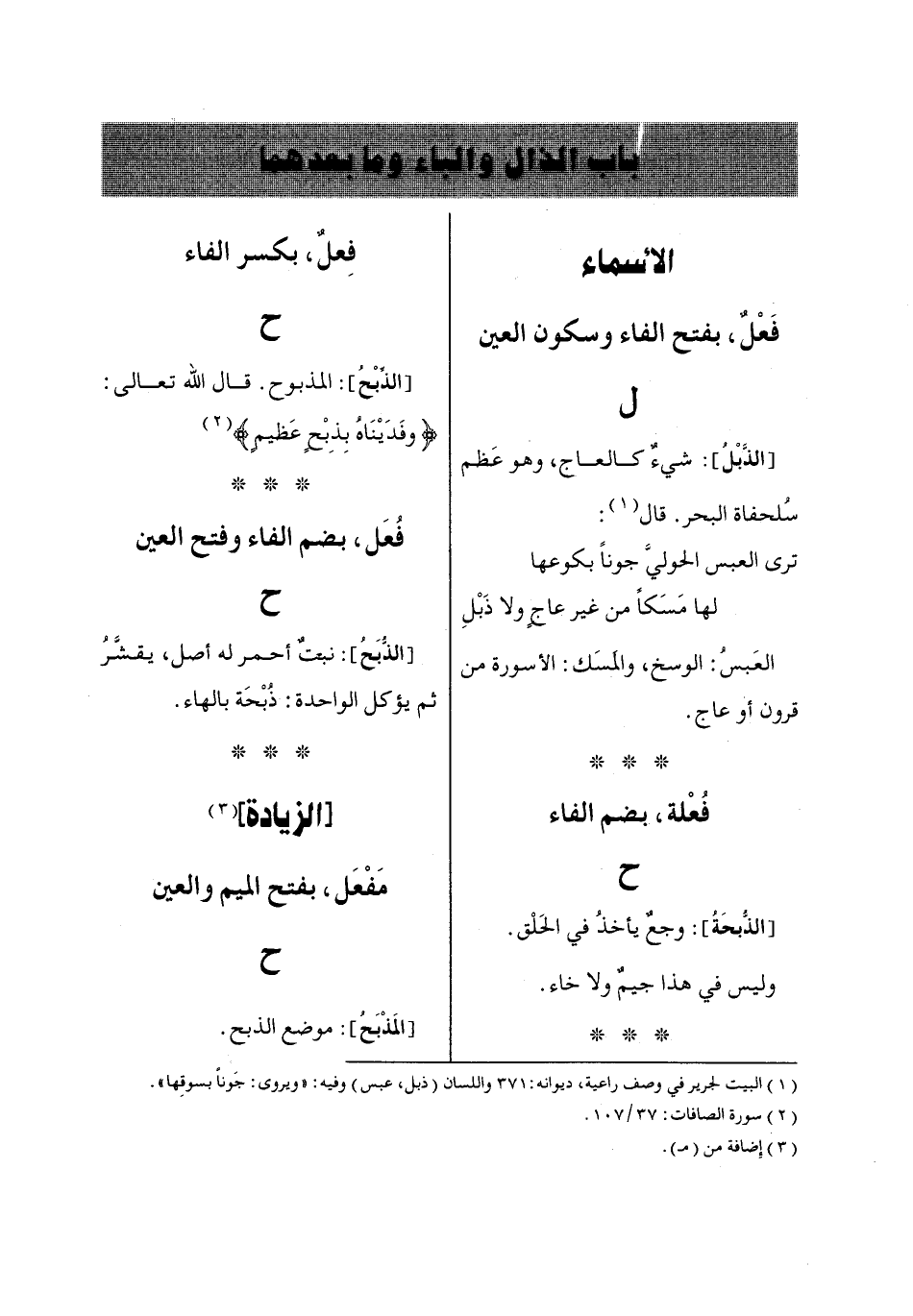 [الذِّبْحُ]: المذبوح. قال الله تعالى: