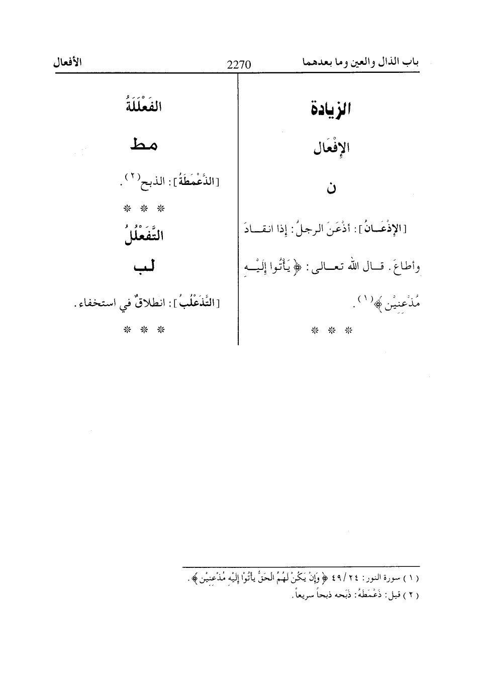 (2) قيل: ذعمطه: ذبحه ذبحا سريعا.