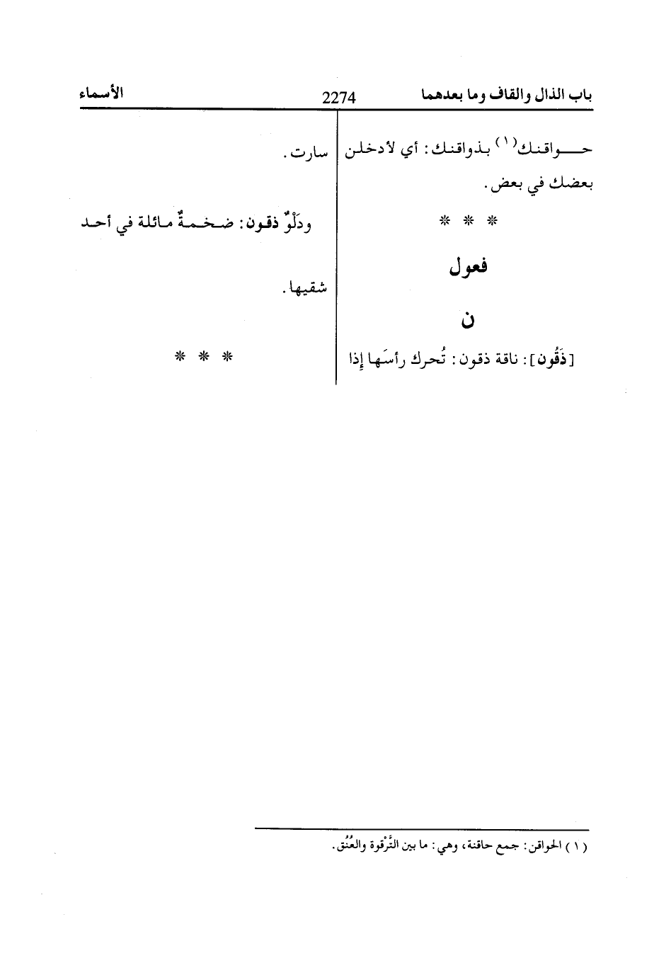[ذَقُون]: ناقة ذقون: تُحرك رأسَها إِذا سارت.