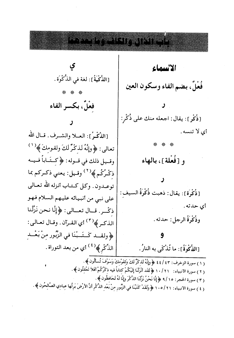 باب الذال والكاف وما بعدهما