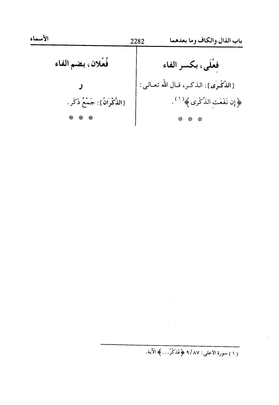[الذِّكْرَى]: الذكر، قال الله تعالى: