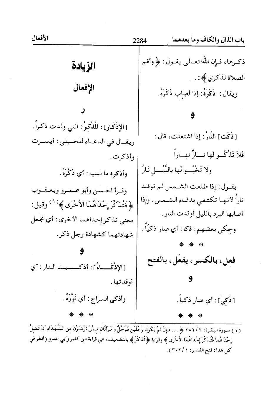 (1) سورة البقرة: 2/ 282 ... فَإِنْ لَمْ يَكُوناا رَجُلَيْنِ فَرَجُلٌ وَامْرَأَتاانِ مِمَّنْ تَرْضَوْنَ مِنَ الشُّهَدااءِ أَنْ تَضِلَّ إِحْدااهُماا فَتُذَكِّرَ إِحْدااهُمَا الْأُخْرى وقراءة فَتُذَكِّرَ بالتضعيف، هي قراءة ابن كثير وأبي عمرو (انظر في كل هذا: فتح القدير: 1/ 302).