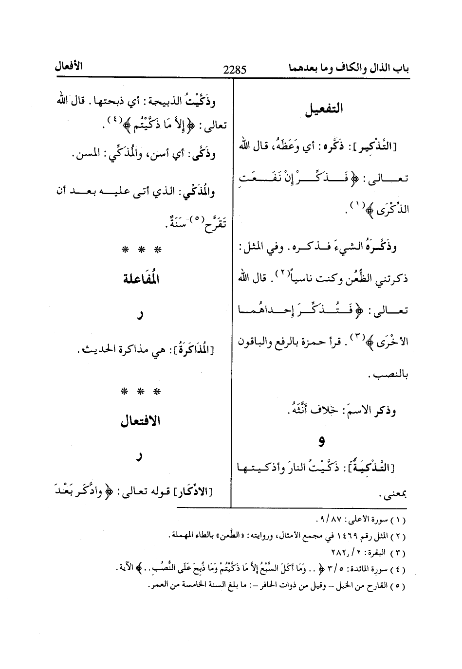 وذَكَّيْتُ الذبيحة: أي ذبحتها. قال الله تعالى: إِلّاا ماا ذَكَّيْتُمْ «4».