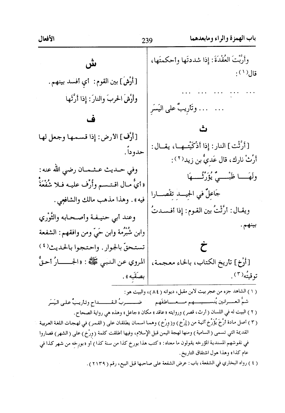 (2) البيت له في اللسان (أرث، قصر) وروايته «عاقد» مكان «جاعل» وهذه هي رواية الصحاح.
