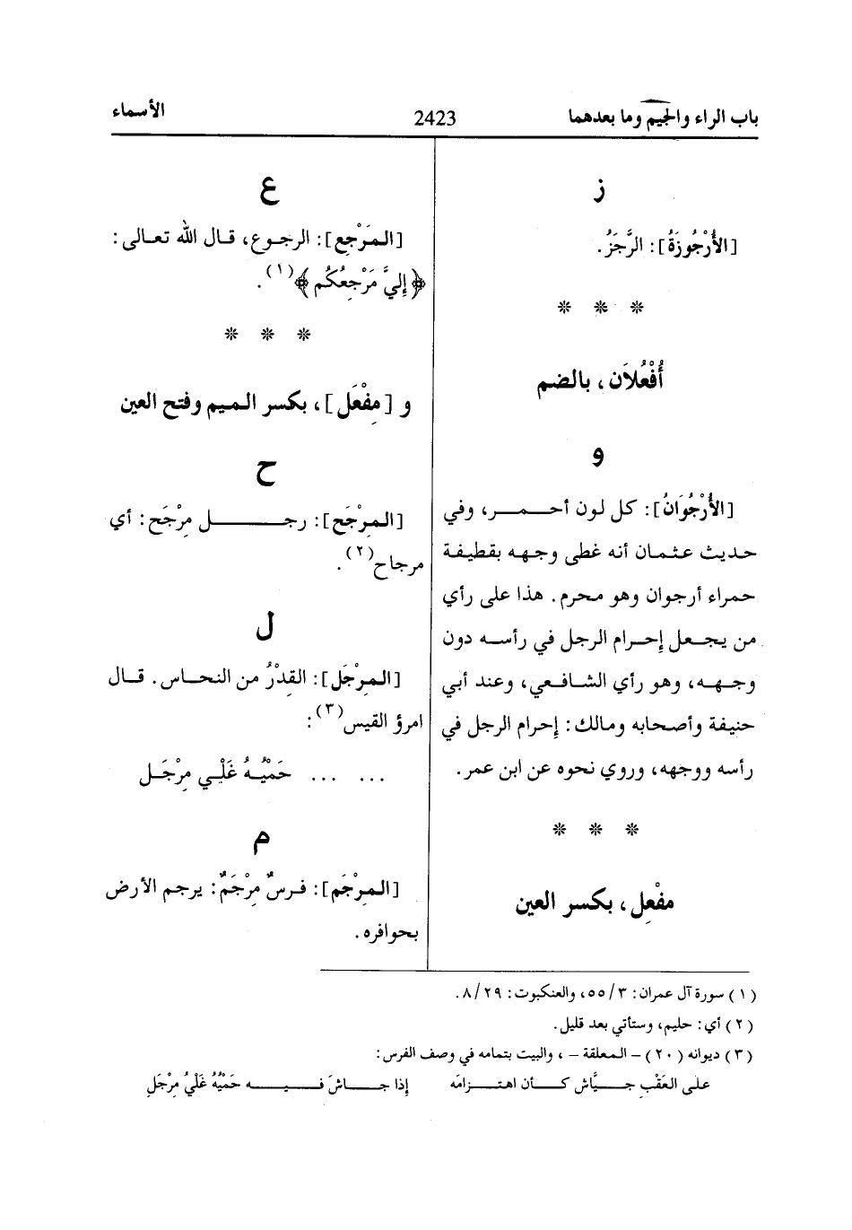 [المَرْجِع]: الرجوع، قال الله تعالى: