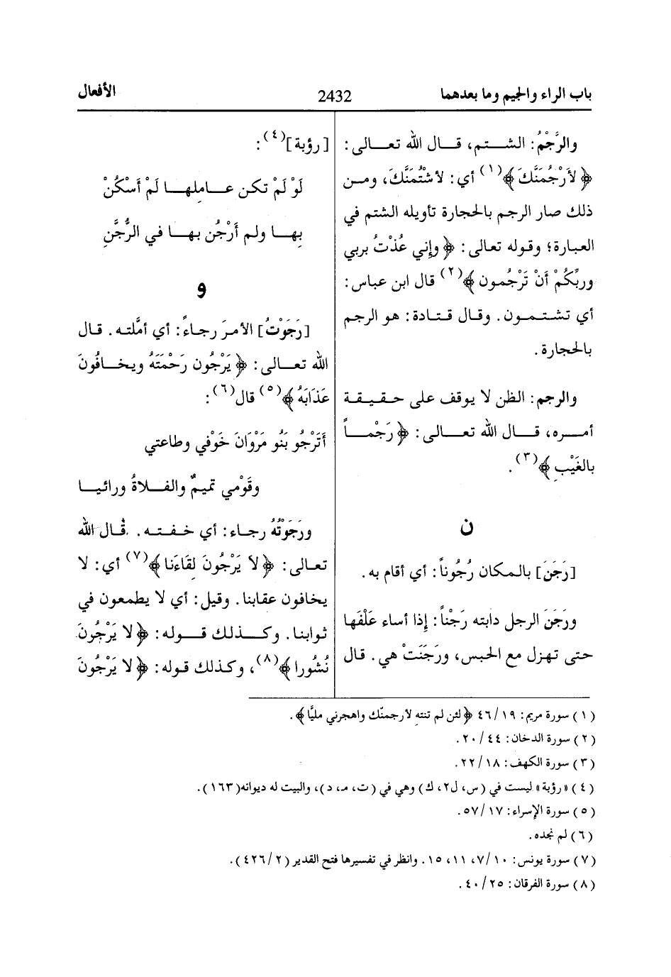 لَأَرْجُمَنَّكَ «1» أي: لأشْتُمَنَّكَ، ومن ذلك صار الرجم بالحجارة تأويله الشتم في العبارة؛ وقوله تعالى: وَإِنِّي عُذْتُ بِرَبِّي وَرَبِّكُمْ أَنْ تَرْجُمُونِ «2»