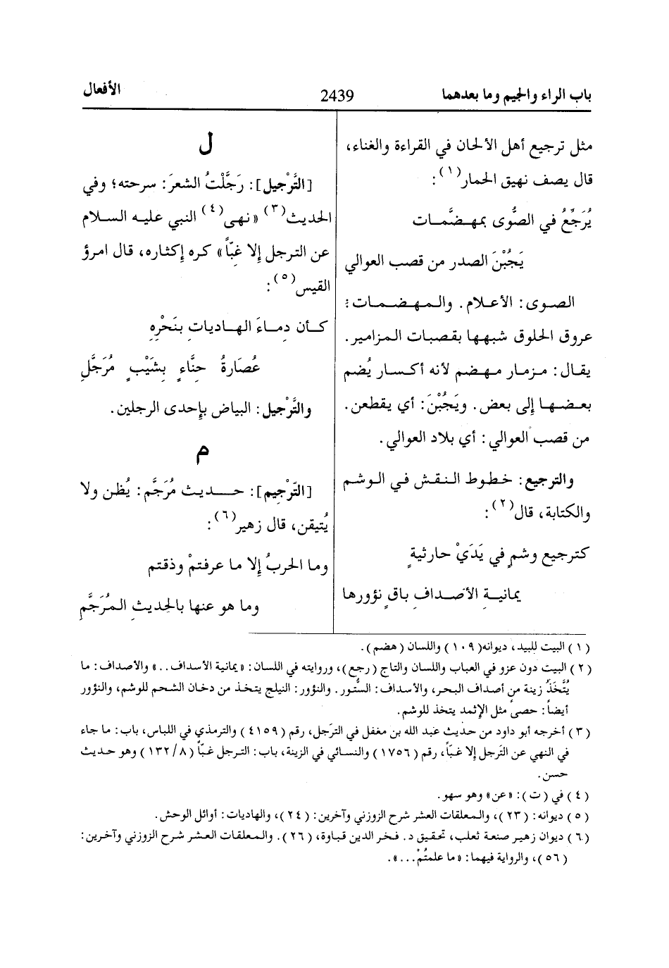 (2) البيت دون عزو في العباب واللسان والتاج (رجع)، وروايته في اللسان: