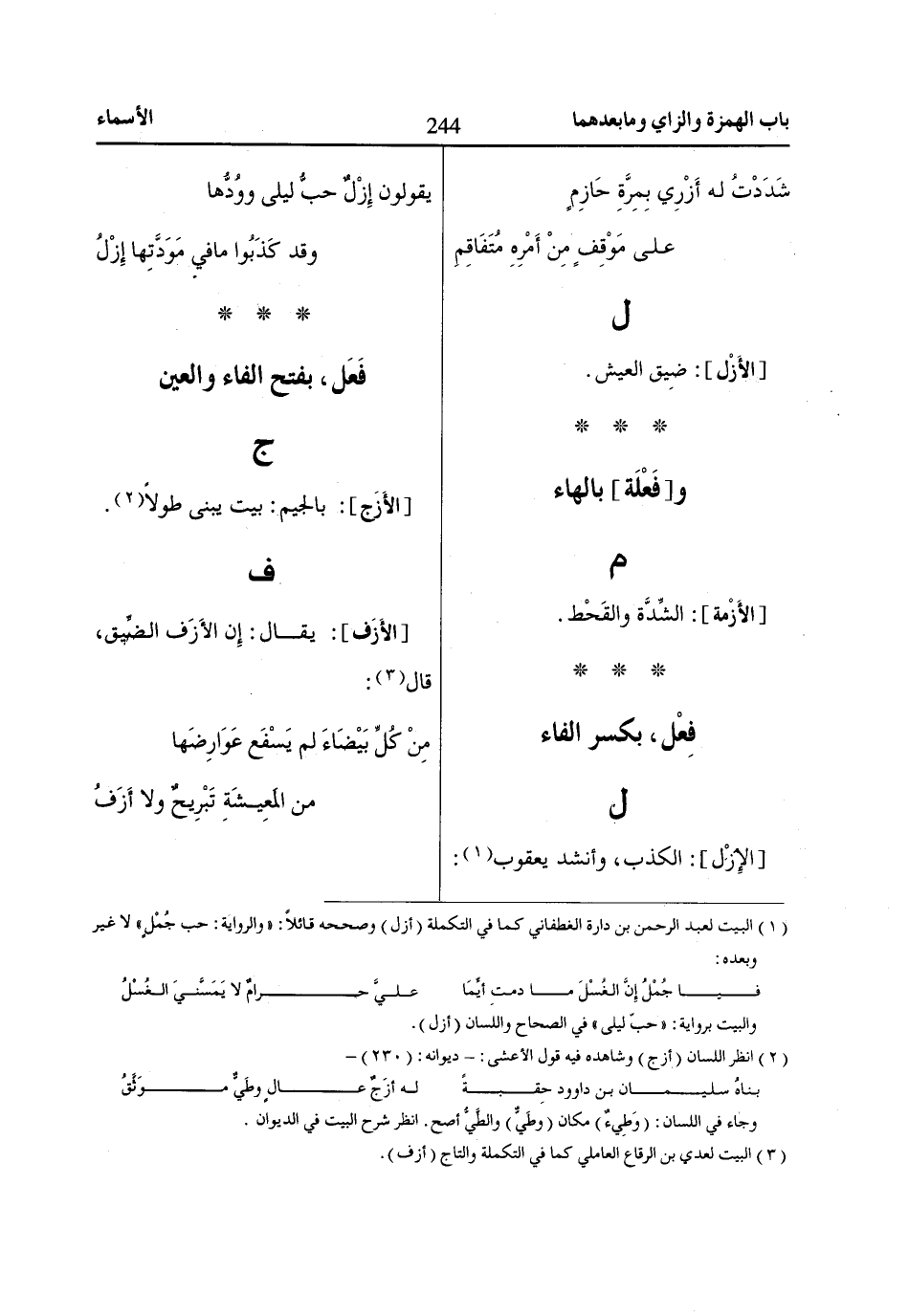 (2) انظر اللسان (أزج) وشاهده فيه قول الأعشى: - ديوانه: (230) -