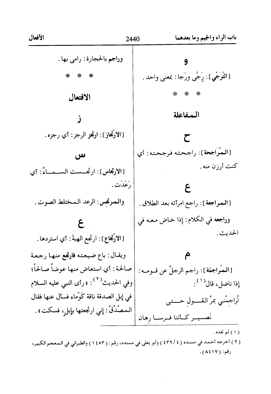 [المُراجمَة]: راجم الرجلُ عن قومه: