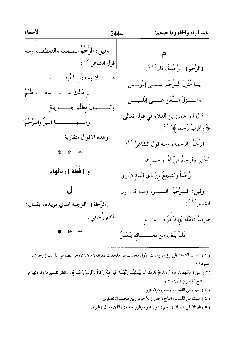 (1) يُنسب الشاهد إلى رؤبة، والبيت الأول فحسب في ملحقات ديوانه (175) وهو أيضاً في اللسان (رحم).