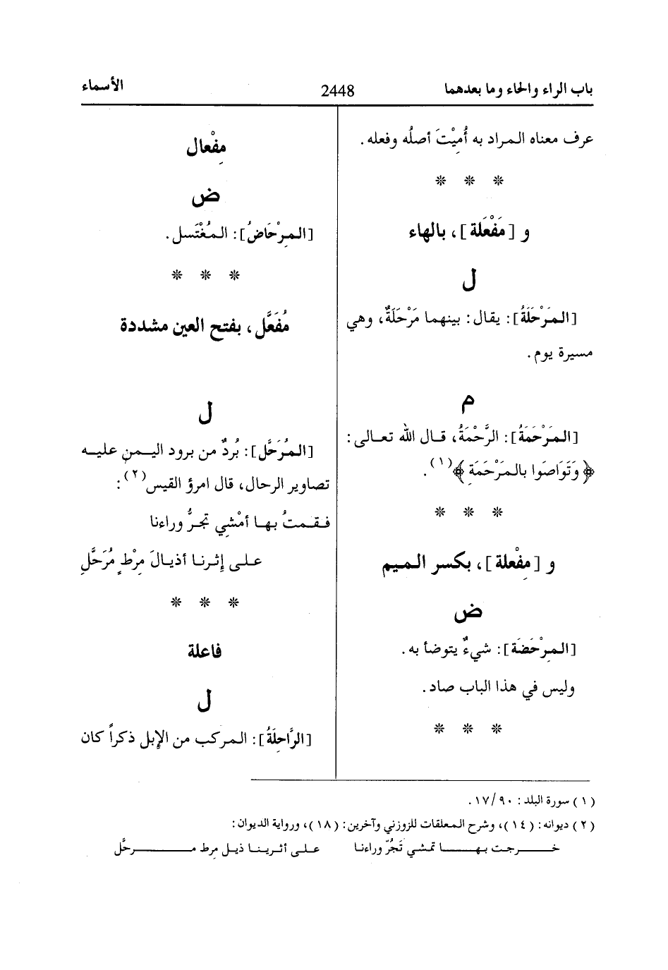 [المَرْحَلَةُ]: يقال: بينهما مَرْحَلَةٌ، وهي مسيرة يوم.