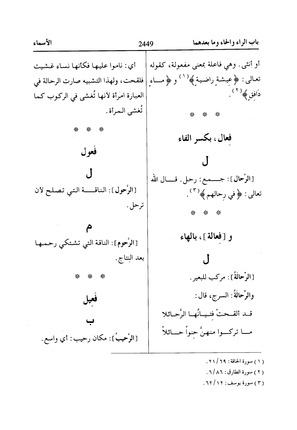 [الرِّحال]: جمع: رحل. قال الله تعالى: فِي رِحاالِهِمْ «3».
