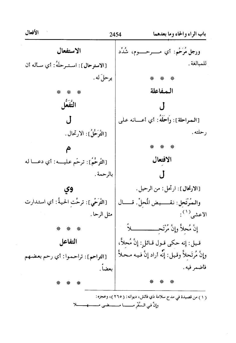 [الاسترحال]: استرحلَهُ: أي سأله أن يرحلَ له.