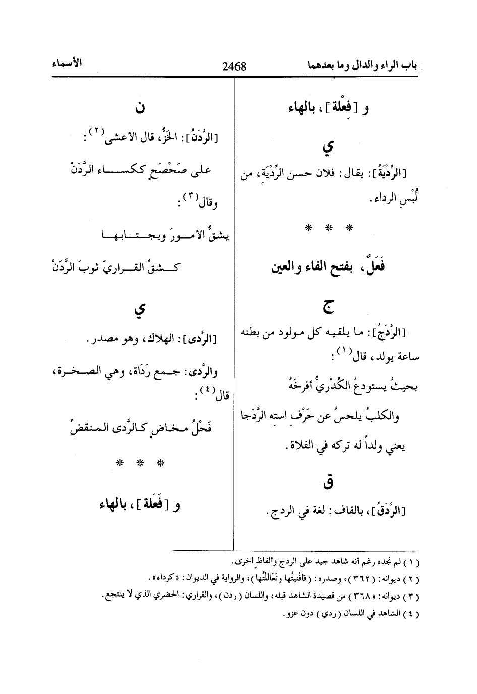 (1) لم نجده رغم أنه شاهد جيد على الردج وألفاظٍ أخرى.