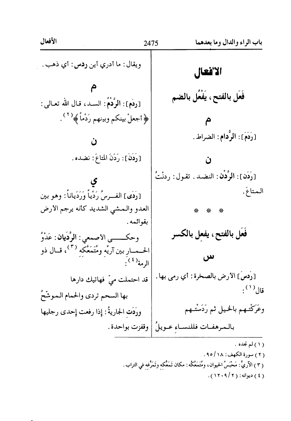 [ردَم]: الرَّدْمُ: السد، قال الله تعالى:
