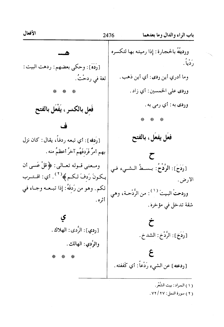 وردحتْ البيتَ «1»: من الرُّدْحة، وهي شقة تدخل في مؤخره.