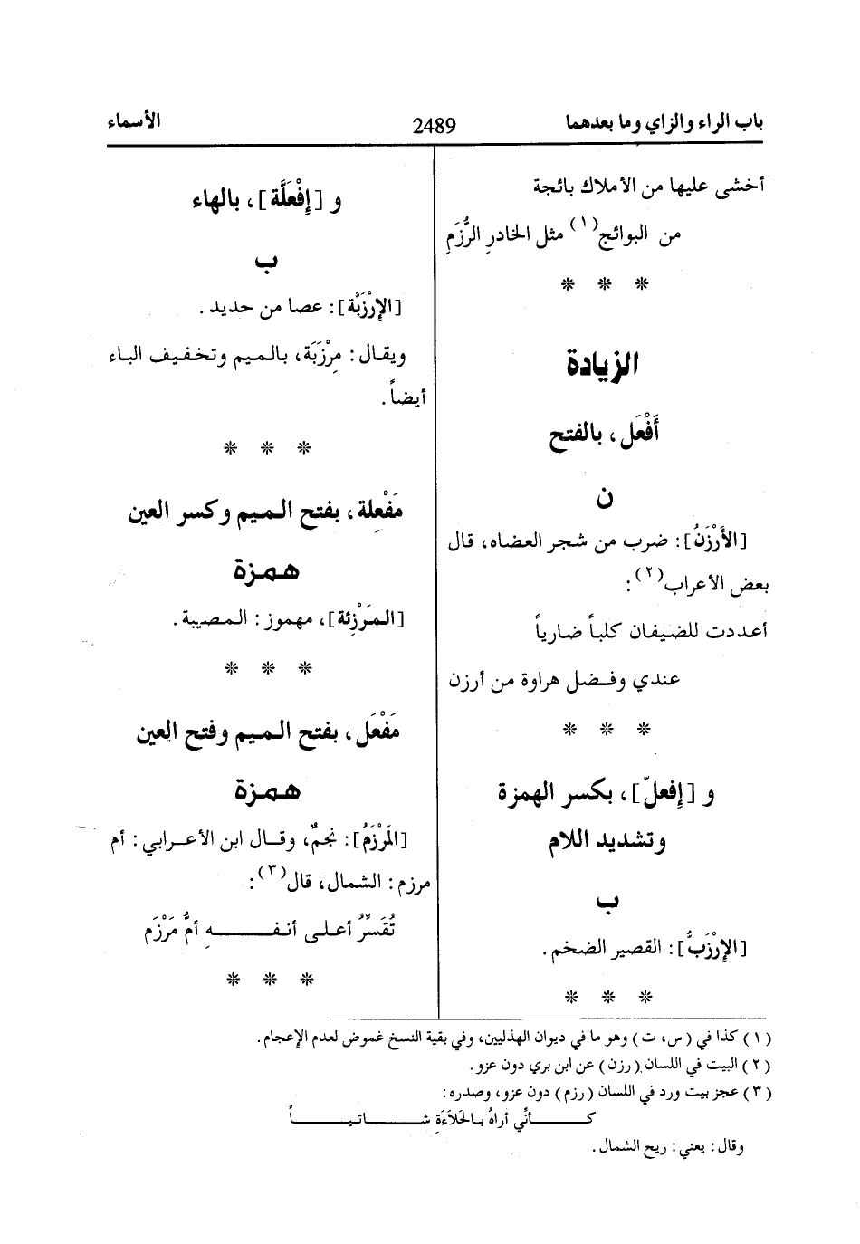 (2) البيت في اللسان (رزن) عن ابن بري دون عزو.