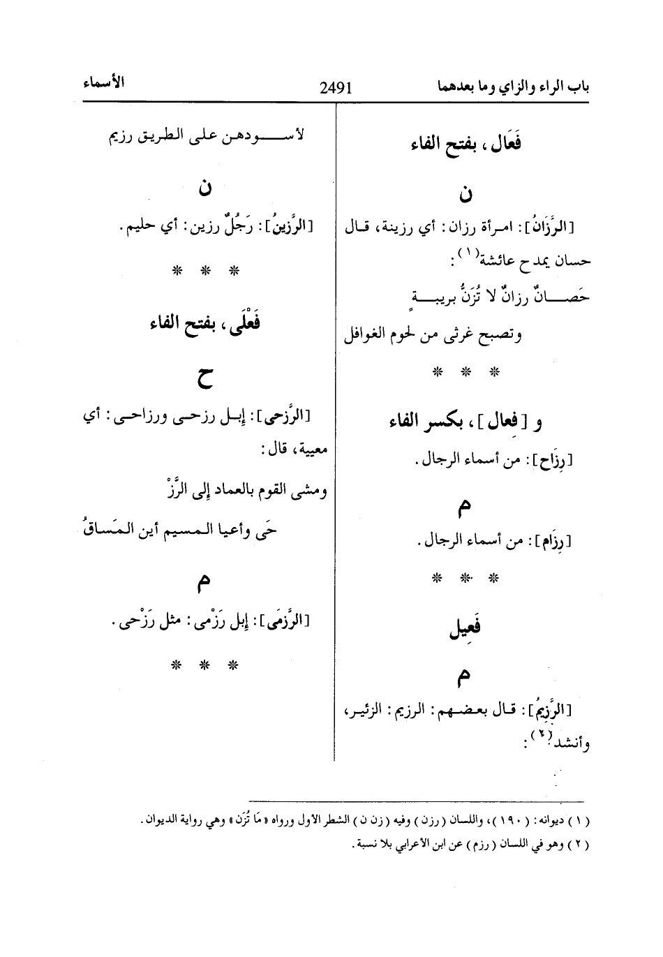 (2) وهو في اللسان (رزم) عن ابن الأعرابي بلا نسبة.