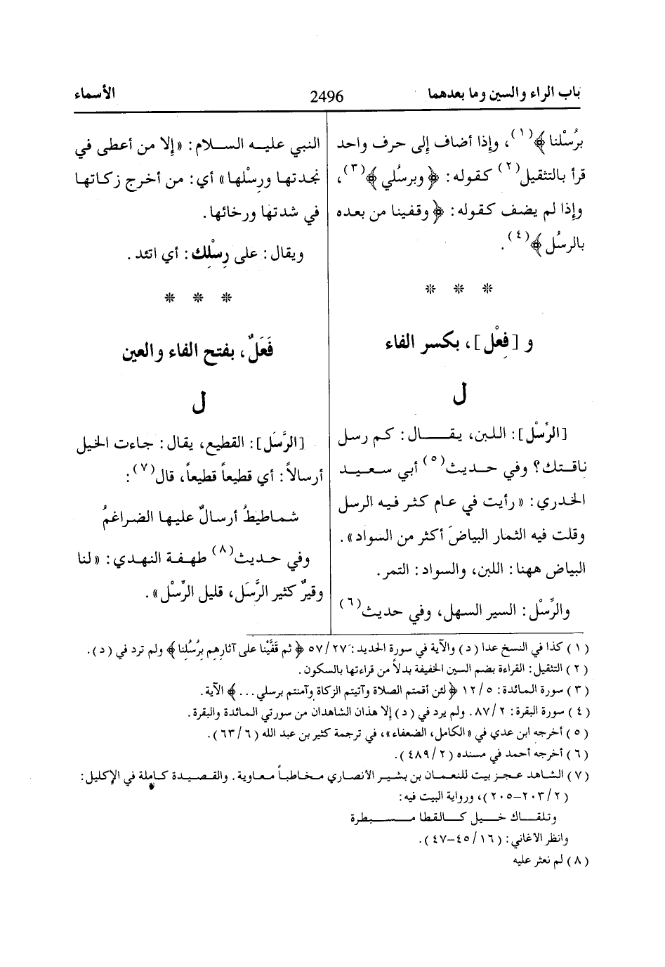 [الرَّسَل]: القطيع، يقال: جاءت الخيل أرسالًا: أي قطيعاً قطيعاً، قال «7»:
