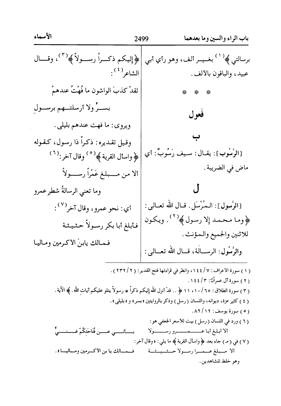 [الرَّسول]: المُرْسَل. قال الله تعالى: