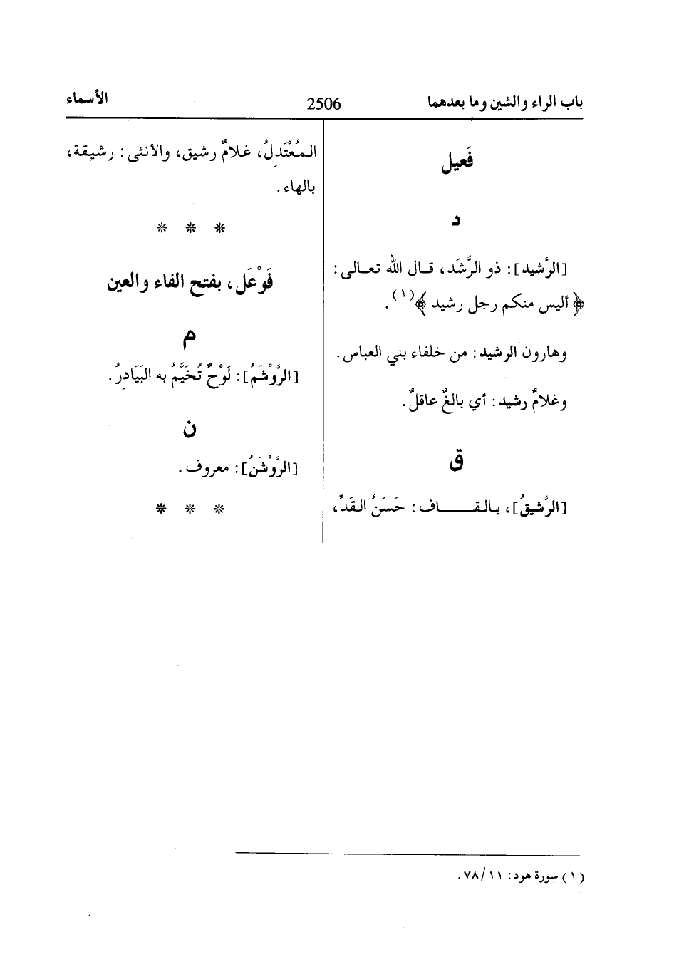 [الرَّشيد]: ذو الرَّشَد، قال الله تعالى: