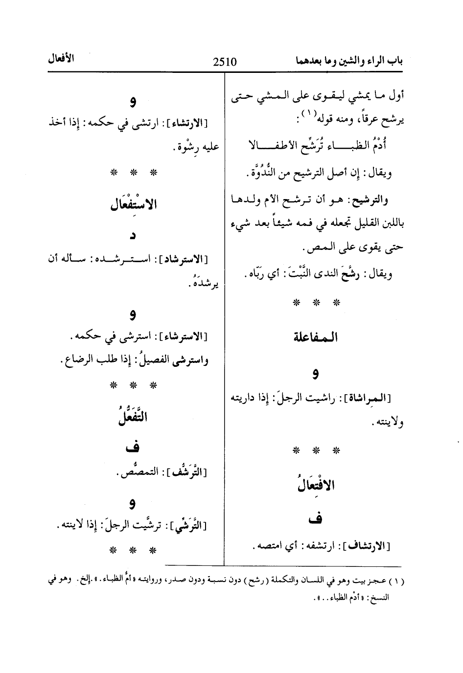(1) عجز بيت وهو في اللسان والتكملة (رشح) دون نسبة ودون صدر، وروايته