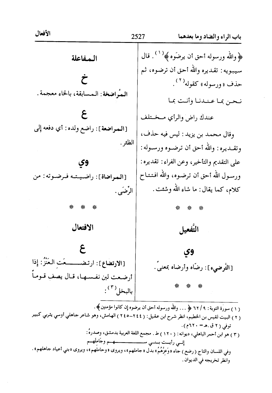 [المراضاة]: راضيته فرضوته: من الرِّضَى.