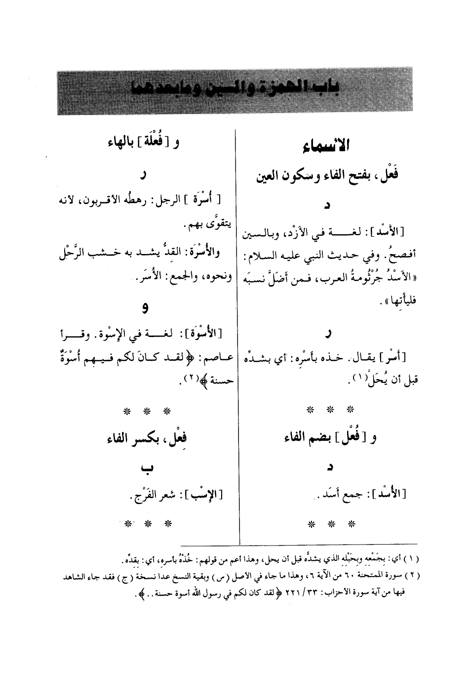 و [الأُسْوَة]: لغة في الإِسْوة. وقرأ عاصم: لَقَدْ كاانَ لَكُمْ فِيهِمْ أُسْوَةٌ حَسَنَةٌ «2».