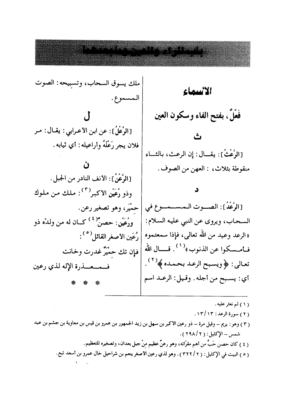 [الرَّعْدُ]: الصوت المسموع في السحاب،