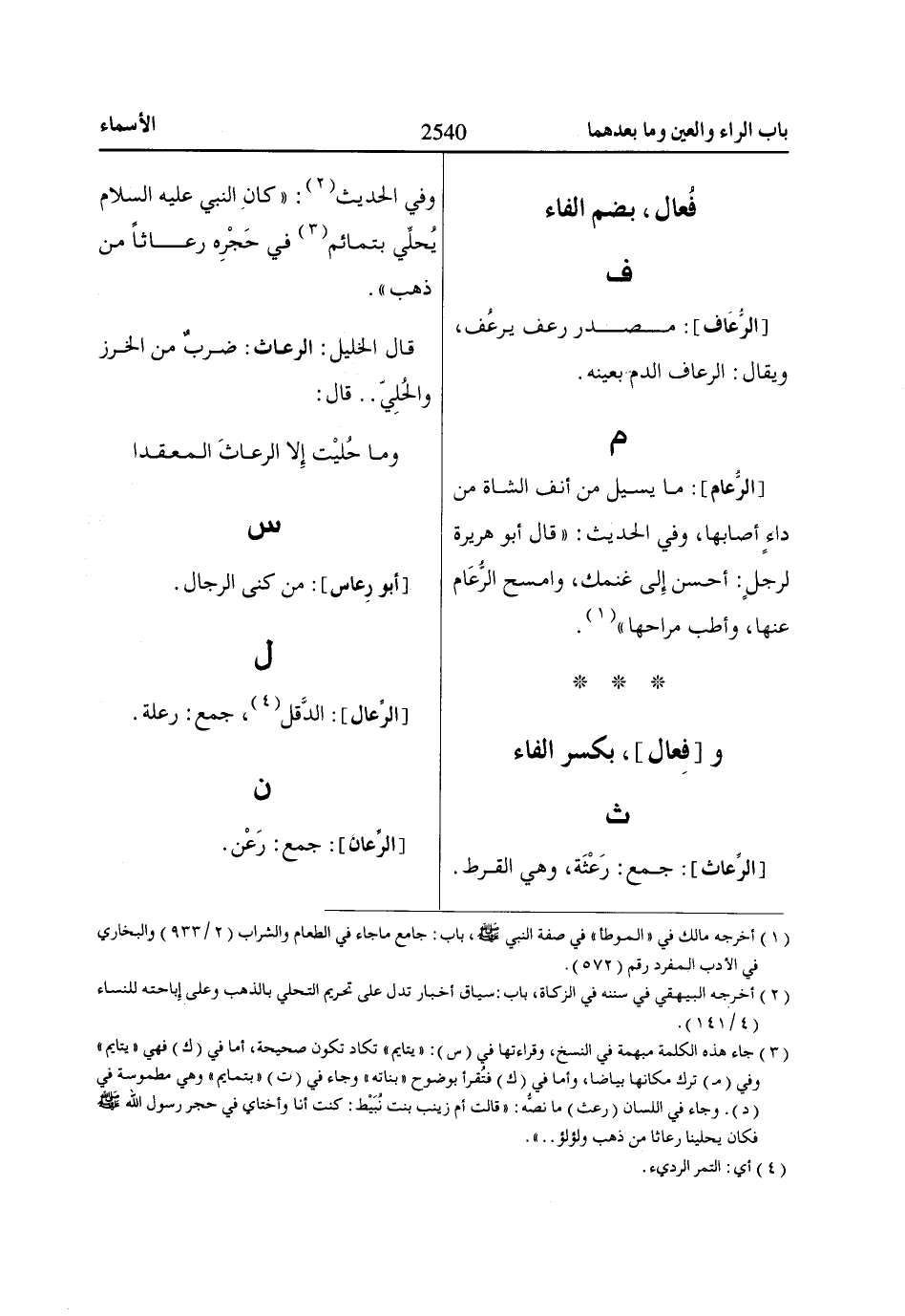 قال الخليل: الرعاث: ضربٌ من الخرز والحُلِيّ .. قال: