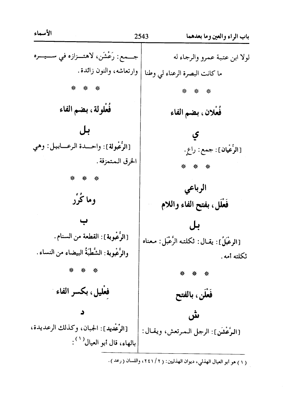 [الرِّعْديد]: الجبان، وكذلك الرعديدة، بالهاء، قال أبو العيال «1»: