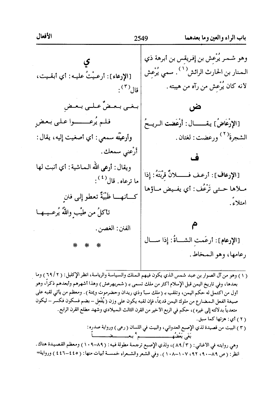(3) البيت من قصيدة لذي الإصبع العدواني، والبيت في اللسان (رعى) ورواية صدره: