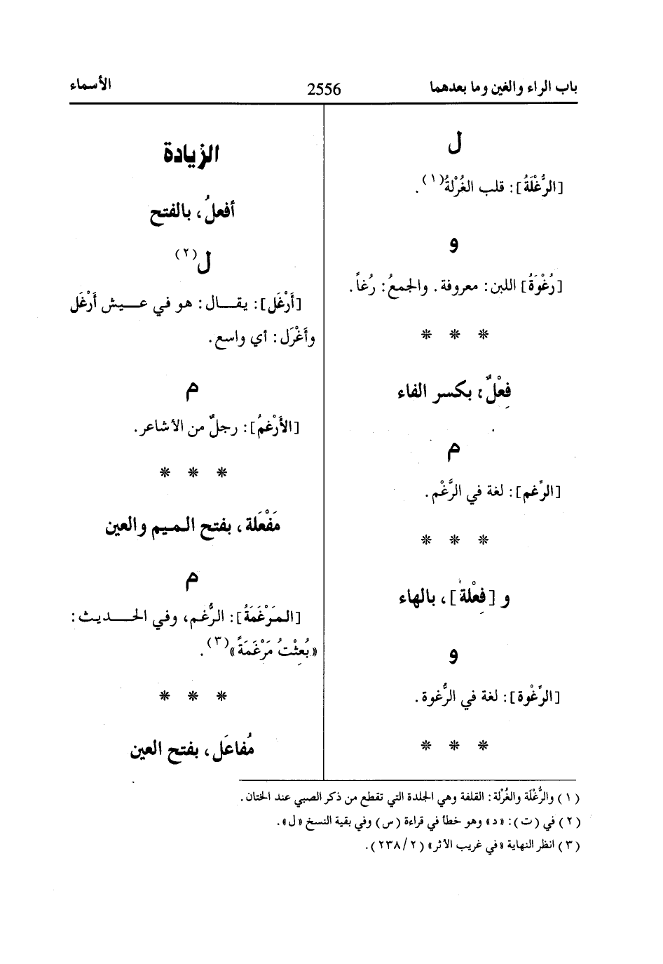 (1) والرُّغْلَة والغُرْلة: القلفة وهي الجلدة التي تقطع من ذكر الصبي عند الختان.