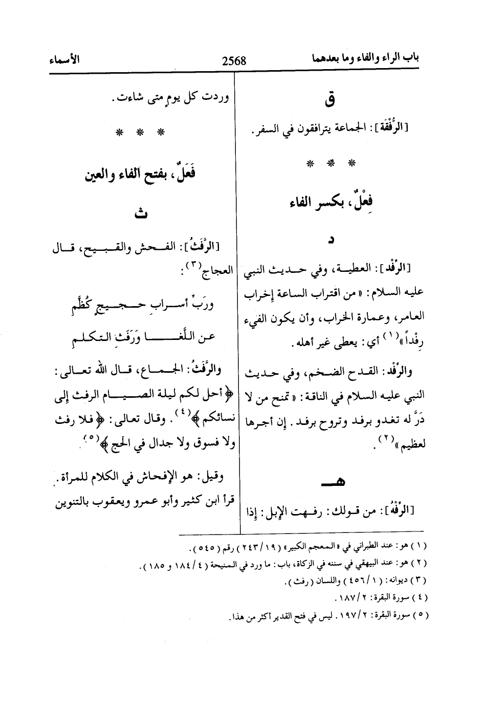 أُحِلَّ لَكُمْ لَيْلَةَ الصِّياامِ الرَّفَثُ إِلى نِساائِكُمْ «4». وقال تعالى: فَلاا رَفَثَ وَلاا فُسُوقَ وَلاا جِداالَ فِي الْحَجِّ «5».