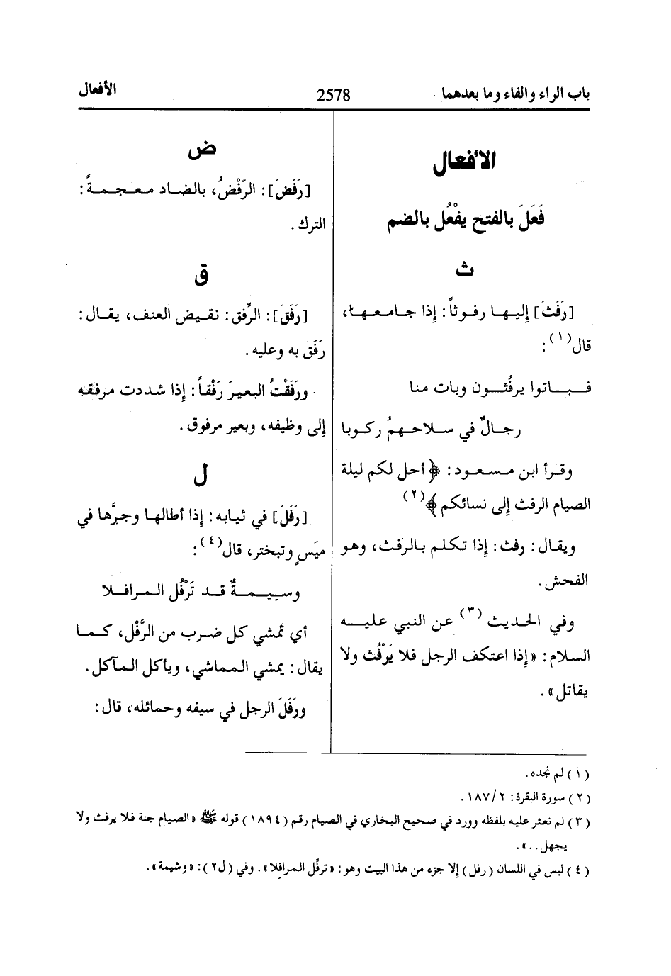 [رَفَثَ] إِليها رفوثاً: إِذا جامعها، قال «1»: