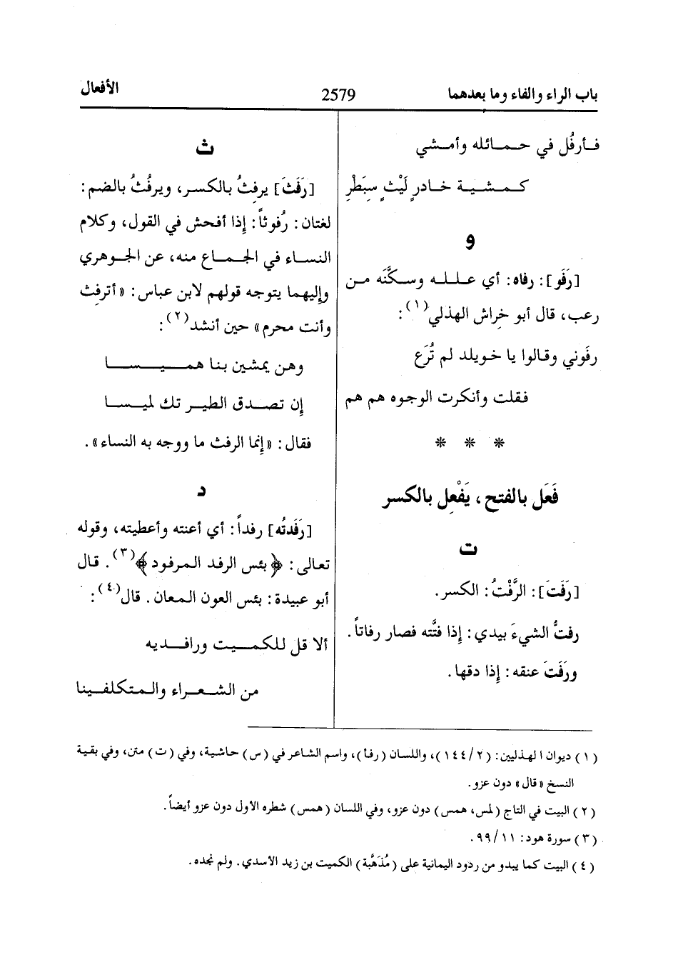 لغتان: رُفوثاً: إِذا أفحش في القول، وكلام النساء في الجماع منه، عن الجوهري وإِليهما يتوجه
