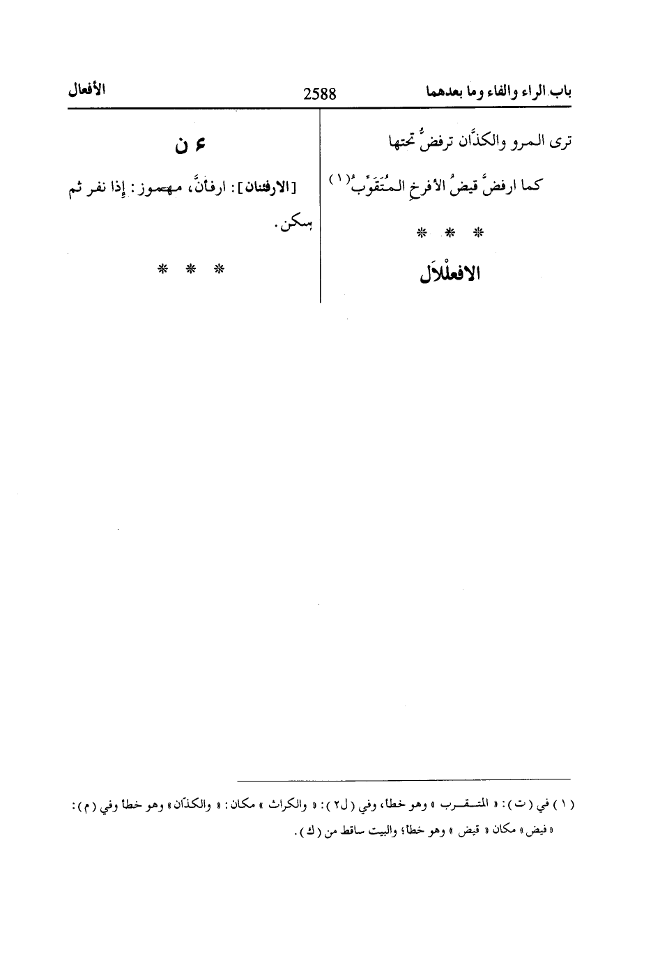 [الارفئنان]: ارفأنَّ، مهموز: إِذا نفر ثم سكن.
