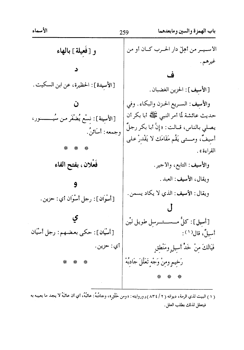 [أَسِيل]: كلُّ مسترسِل طويل ليِّن أَسِيلٌ، قال «1»: