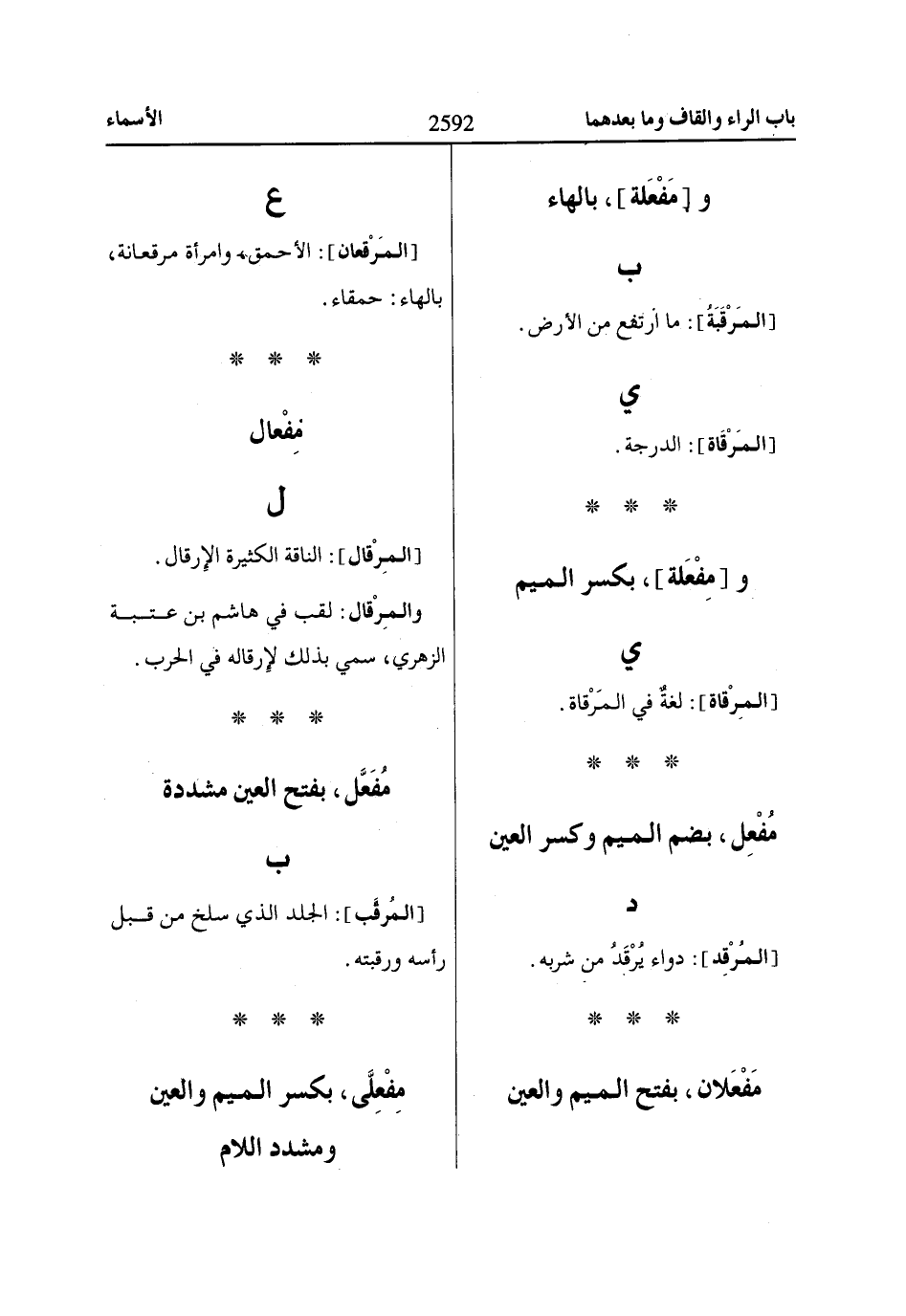 [المَرْقعان]: الأحمق، وامرأة مرقعانة، بالهاء: حمقاء.