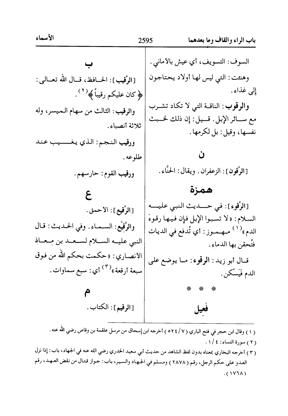 [الرَّقيب]: الحافظ، قال الله تعالى: